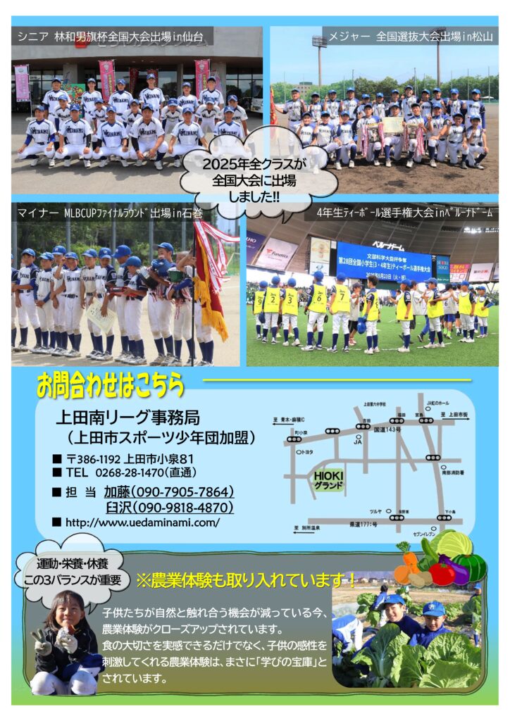 〒386-1192 長野県上田市小泉81上田南リーグ事務局代表電話 0268-28-1470